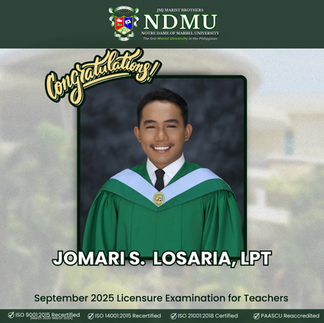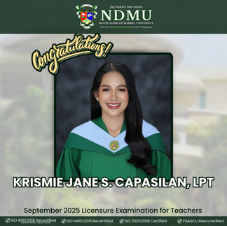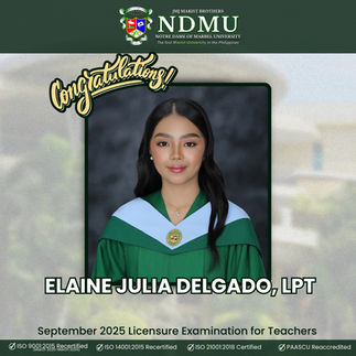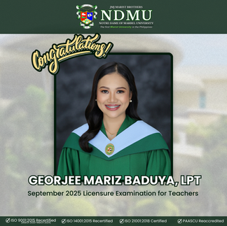 Notre Dame of Marbel University (NDMU) congratulates its 2023–2025 graduates for their strong performance in the September 2025 Licensure Examination for Professional Teachers (LET).