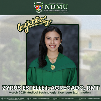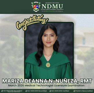 The Notre Dame of Marbel University (NDMU) continues its tradition of academic excellence as its Bachelor of Science in Medical Technology graduates achieved a 100% passing rate in the March 2026 Medical Technologists Licensure Examination, earning the distinction of Top 1 Performing School nationwide.